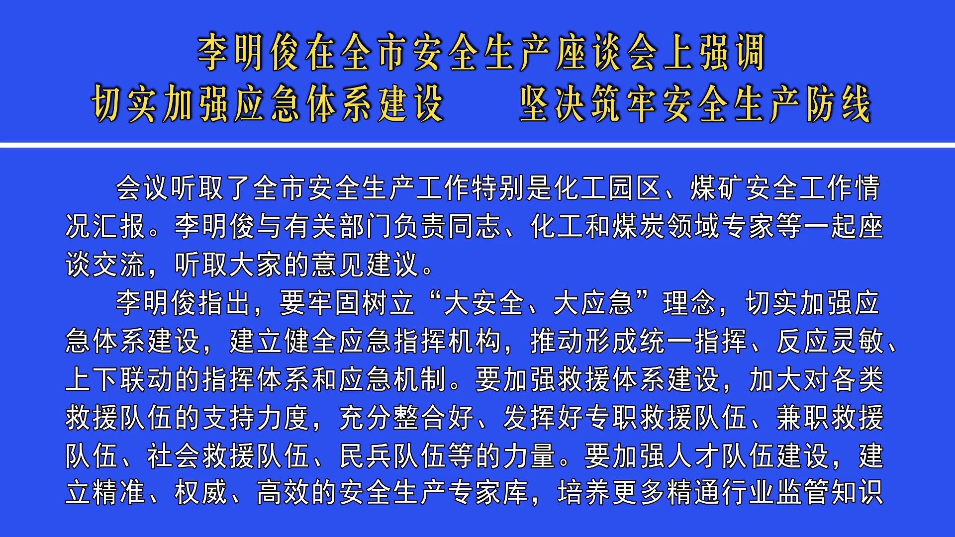 李明俊在全市安全生產(chǎn)座談會(huì)上強(qiáng)調(diào) 切...