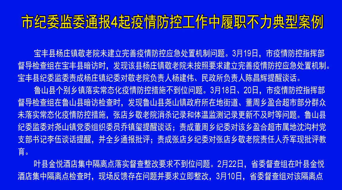 市紀委監(jiān)委通報4起疫情防控工作中履職不力典型案例